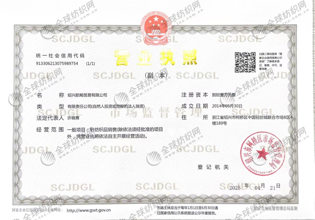 | 营业期限-截止: | 长期 | 发照机关: | 绍兴市柯桥区市场监督管理局 |